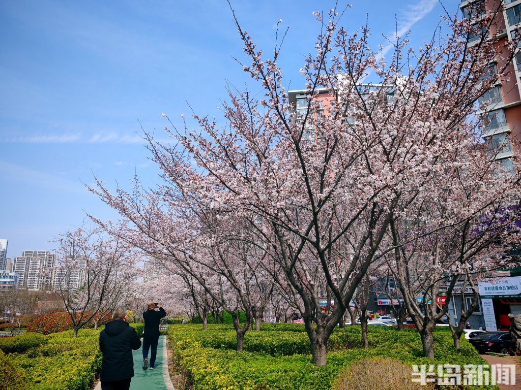 每年春天青岛市民在欣赏樱花的时候,大家都会想到去中山公园等知名景区。实际上,伴随着青岛口袋公园的建设和楼院环境治理,越来越多的居民小区、道路绿化带等也种植了樱花等赏花树木。