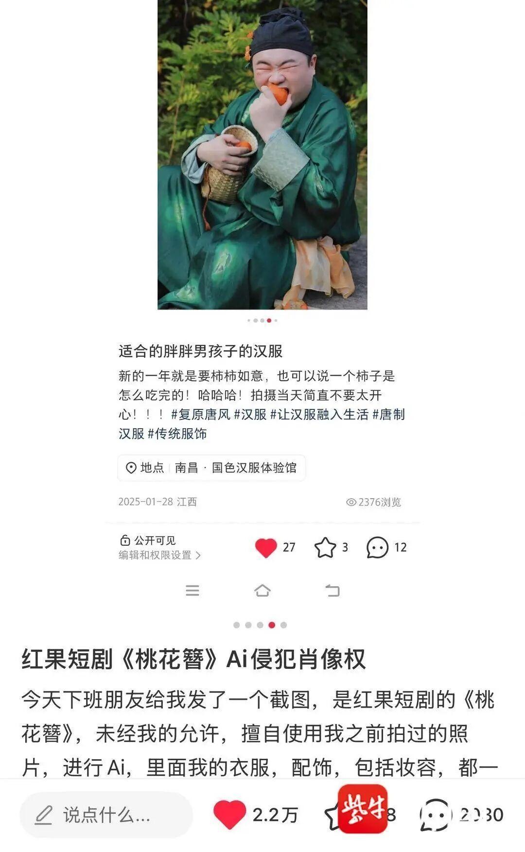 素人拍摄的汉服写真,疑似被短剧偷去AI生成角色 调查:“撞脸”维权难,有横店群演500元“卖脸”