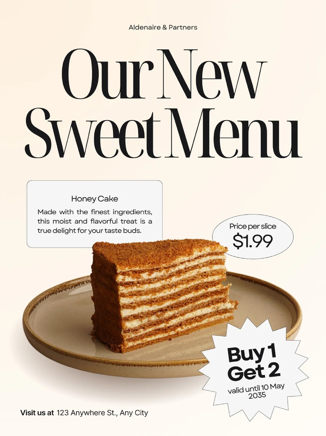 整体设计兼顾视觉吸引力与信息传达功能,主标题“TASTE”与底部“10th BIRTHDAY”强化主题焦点。色彩方面以暖色蛋糕与冷静背景形成对比,突出主体,提升质感。字体排版层级分明,节奏统一,增强整体的专业度与高级感。整张作品具备清晰的信息结构、强烈的情绪感染力和浓厚的调性,是一张兼具传播力与仪式感的高质量海报设计。
