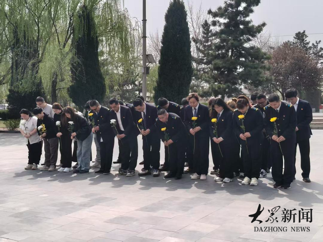在庄严肃穆的纪念碑前,参加活动的职工怀着崇敬之情,敬献鲜花、默哀鞠躬,瞻仰纪念碑,深切缅怀革命先烈。1933年8月18日“泺口九烈士”手挽手走向刑场,高唱《国际歌》,在黄河岸边英勇就义,用生命铸就了共产党人的浩然正气。