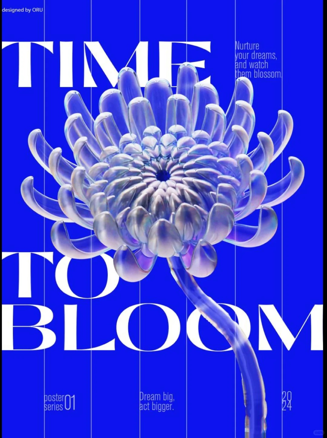 典型的居中构图海报,采用居中构图与数字花朵结合,营造出强视觉焦点与极高完成度的艺术氛围。蓝色背景冷静理性,3D花材梦幻柔美,形成强烈视觉反差。字体结构与图像交叠,增强画面张力,信息层级分明且节奏和谐。整体呈现出“科技×诗意”的未来感,是一件集美学、信息性与情绪表达于一体的高质量视觉作品。作品仅供学习交流,版权及使用权均归作者所有,请勿他用。
