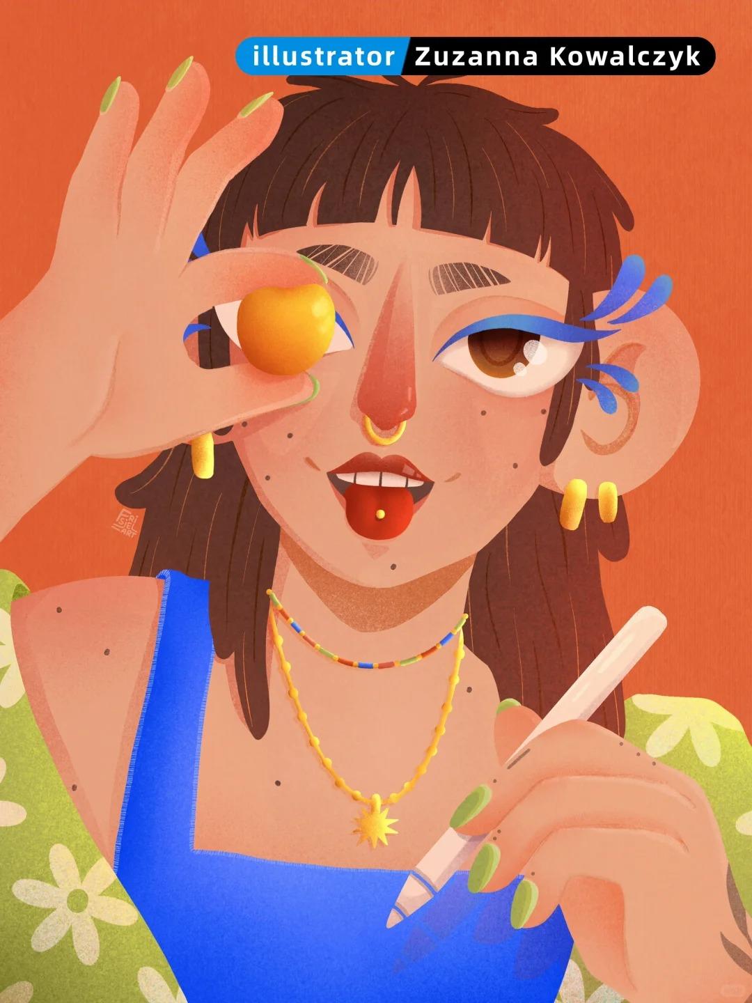 Zuzanna Kowalczyk 是来自波兰的插画师,她的插画作品展现出鲜明的个人风格。插画以色彩鲜艳、生动的形象为主,色彩搭配通常具有高对比度,赋予画面强烈的视觉冲击力。人物形象夸张而富有个性,五官和表情细腻且充满情感,充满了戏剧化和趣味性。她善于通过色彩和形状来表达人物的情感状态与个性,同时也擅长在细节上注入个性化元素,使得每一幅作品都具有独特的故事性和视觉吸引力。