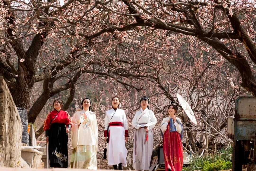 如果春天有声音,那一定是杏花林里鸟鸣伴着风铃响;如果春天有颜色,那一定是贝草夼漫山遍野的粉白杏花;如果春天有味道,那一定是集市上刚出炉的农家点心,混着花香,甜进心里。