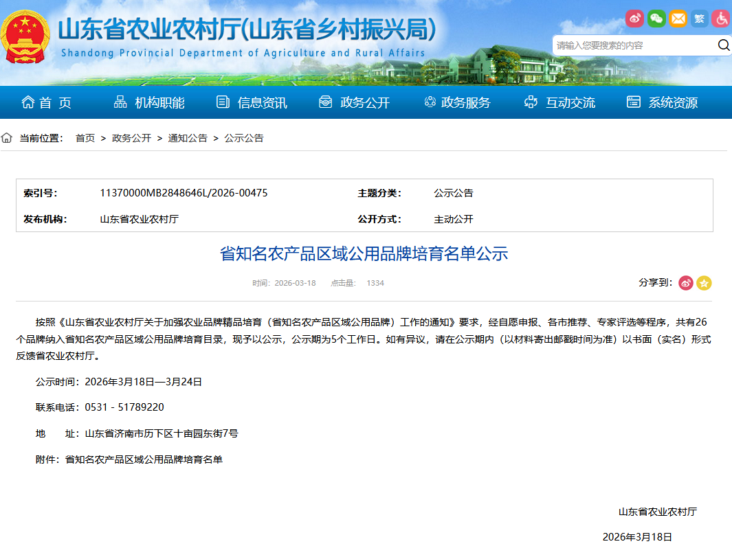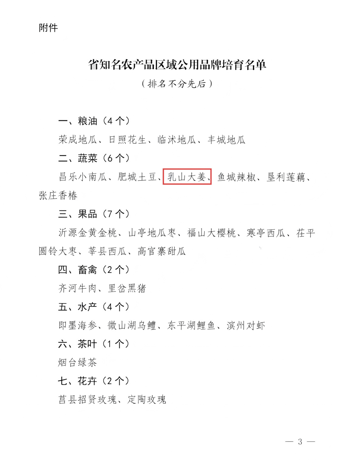 近日,省农业农村厅公布了省知名农产品区域公用品牌培育名单,“乳山大姜”入选。目前乳山市的省级知名农产品区域公用品牌达到3个。