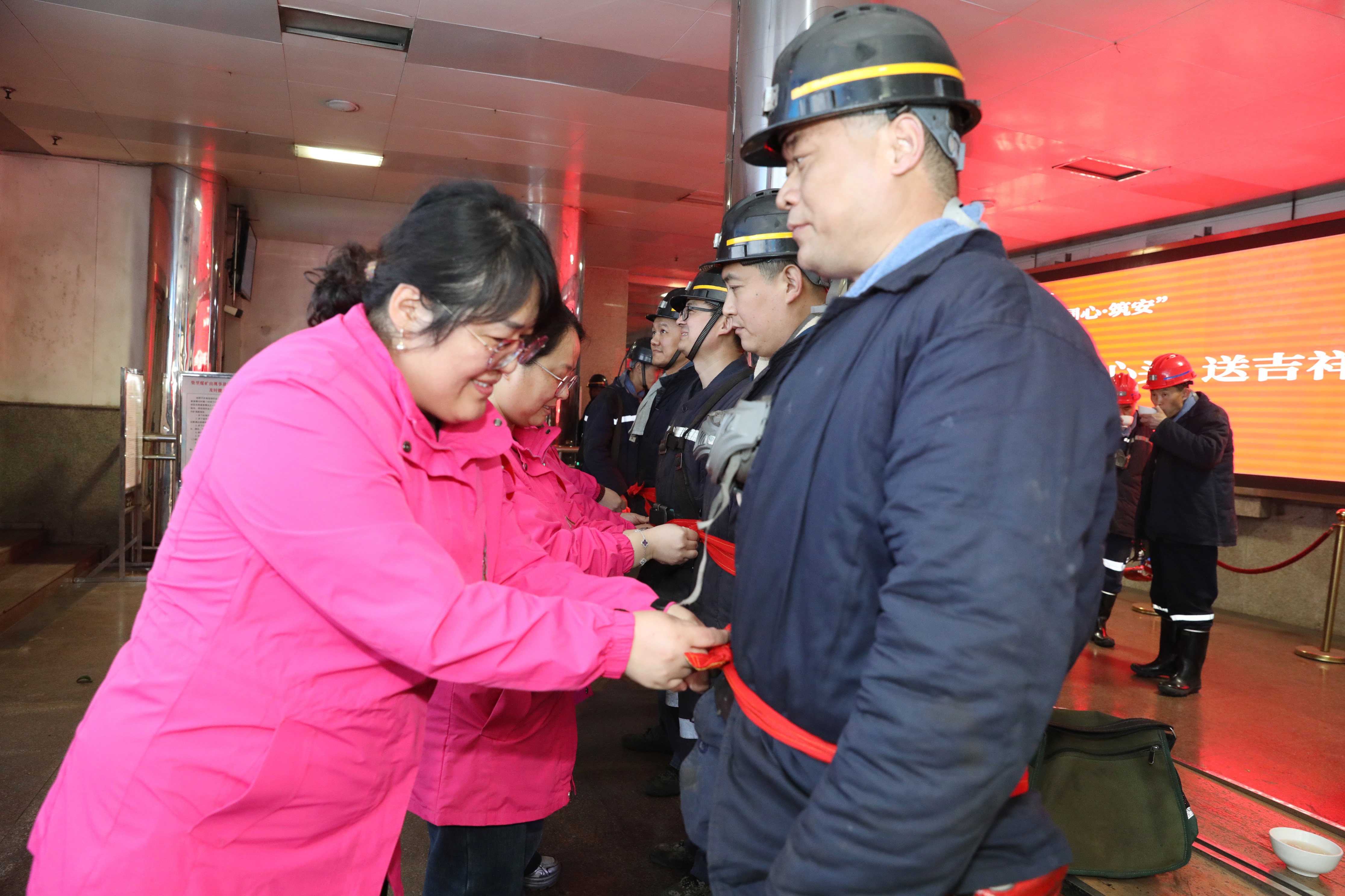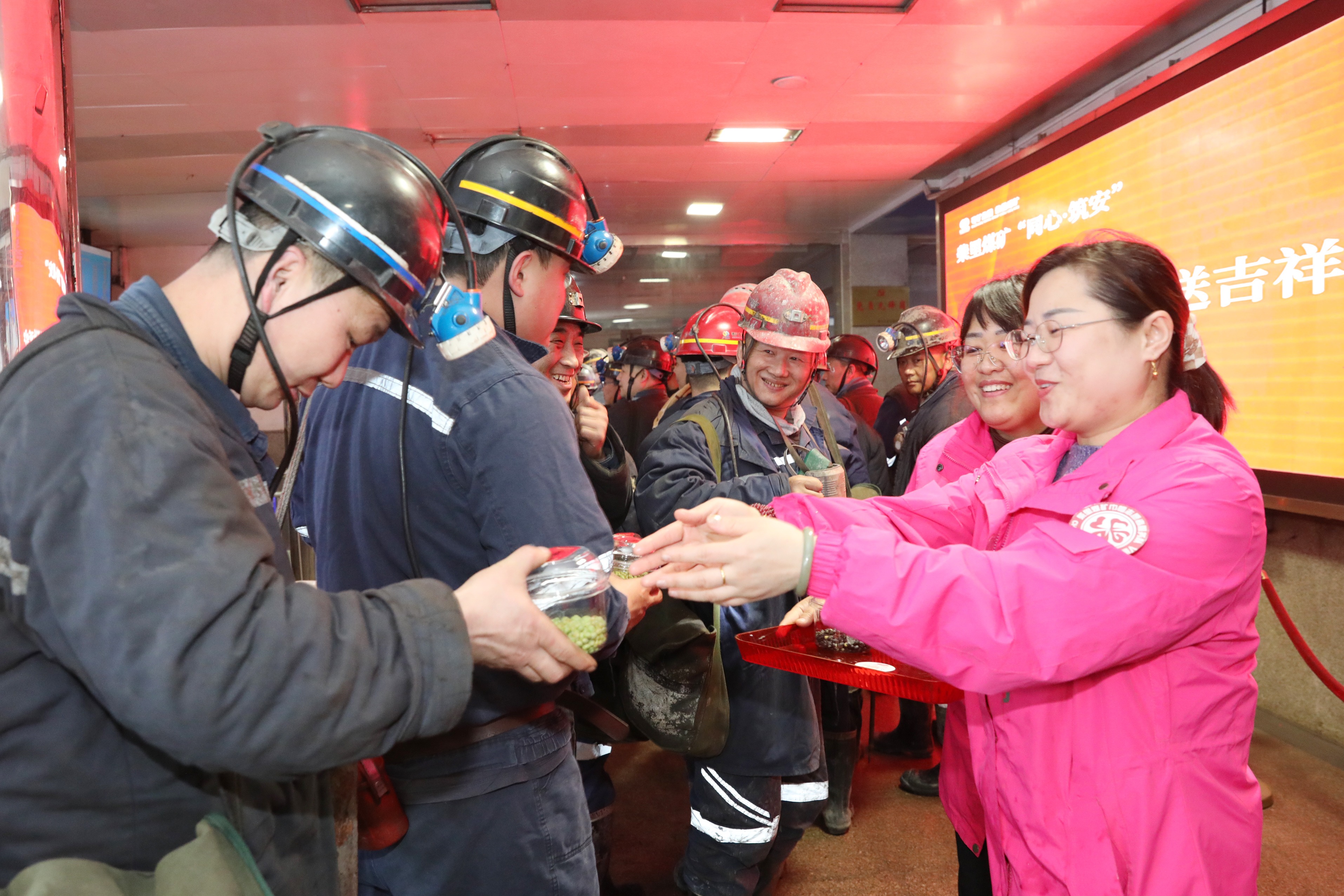 矿工会工作人员与女工协管员们早早集结,精心准备了寓意平安顺遂的红腰带、平安果、吉祥桔,热气腾腾的鸡蛋汤,以及寓意奋进向上的暖心食品,将关怀与期许送到每一位入井、升井职工手中。
