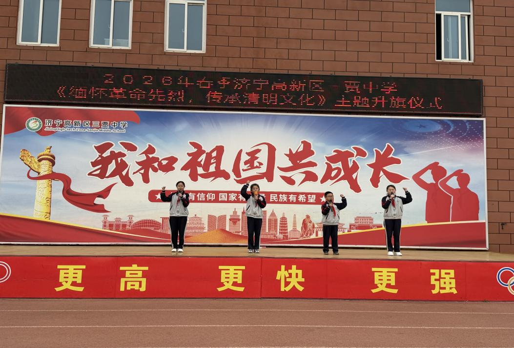 缅怀革命先烈,济宁高新区三贾中学举行主题升旗仪式