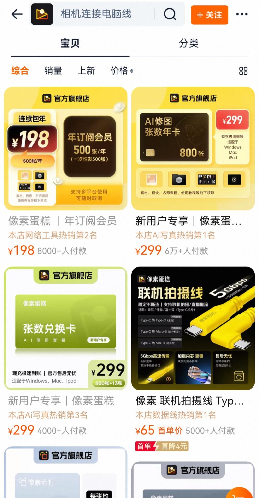 据艾瑞咨询报告,AI技术的应用让商业摄影效率大幅提升,像素蛋糕将修图效率提升20倍,样片追色速度提高6倍。其电商平台数据显示,年订阅会员198元可修500张图,新用户套餐299元可修800张,最畅销的AI修图年卡已有超6万人购买。