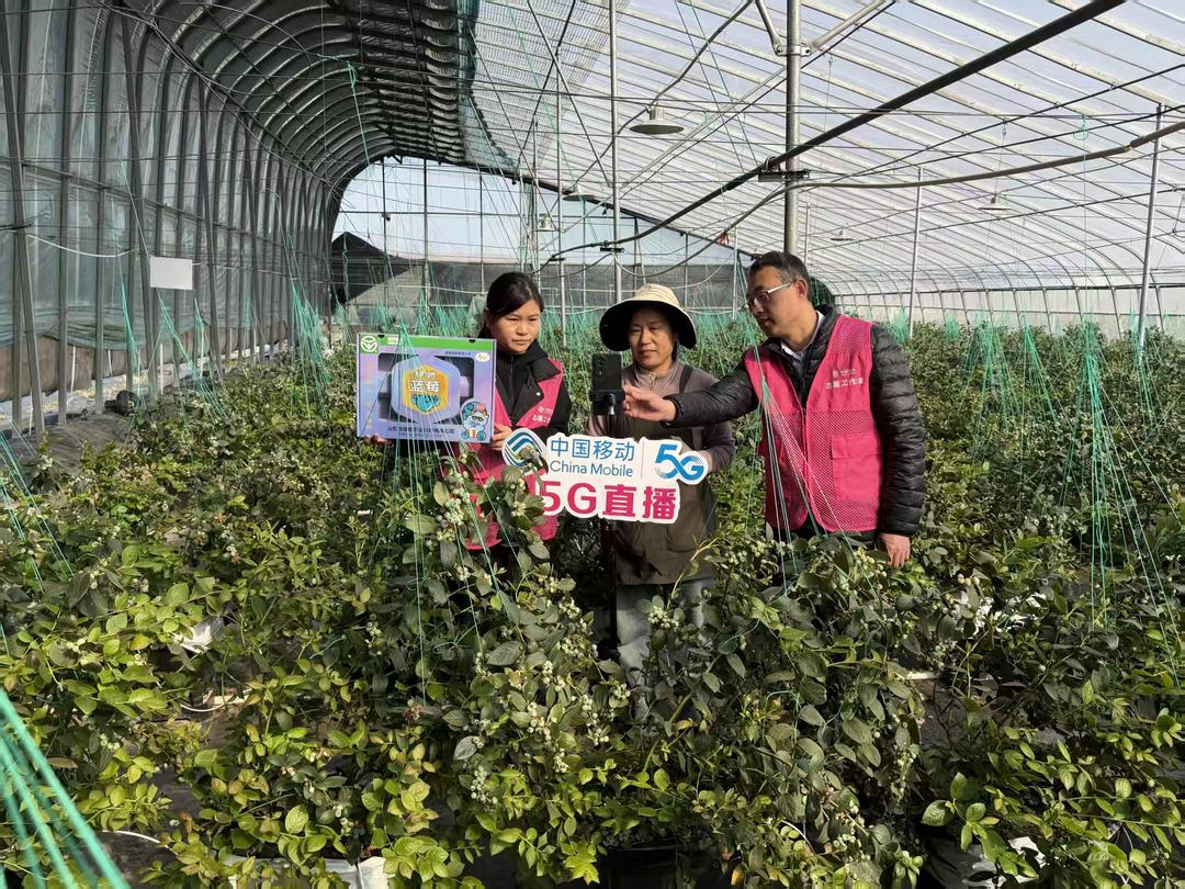 与此同时,移动助农小分队借助5G高清镜头,实时直播蓝莓采摘现场。镜头下,饱满的果实、鲜活的采摘场景清晰呈现,网友们不仅能直观看到蓝莓的生长环境、采摘过程,还能了解绿驰农业绿色种植理念和细节。依托5G低时延、高清晰的特性,让更多人足不出户就能感受田园采摘的乐趣。
