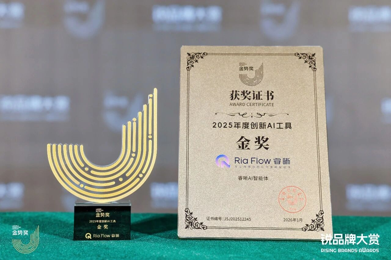 一系列扎实的迭代动作,让Ria Flow睿晰凭借过硬的产品实力脱颖而出,成功斩获金势奖2025年度创新AI工具金奖,跻身2026 AI+营销实力平台TOP 10,目前已成功赋能多个行业标杆客户,充分展现出其在AI品牌管理领域的行业地位与市场影响力。