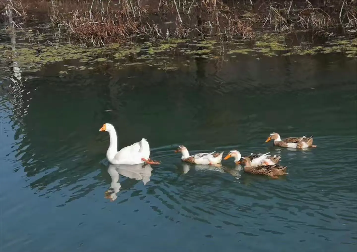 岸边的柳树垂下细长的枝条,嫩绿的新芽星星点点,随风轻拂水面,与澄澈的湖水、远处的青山构成一幅绝美的山水画卷。驻足湖边,清风拂面,听流水潺潺,看波光粼粼,尘世的喧嚣与浮躁,都在这一湾碧水的温柔怀抱中渐渐消散,只剩内心的澄澈与安宁。偶有鹅鸭戏水,泛起圈圈涟漪,打破了湖面的静谧,却更添几分灵动与生机。
