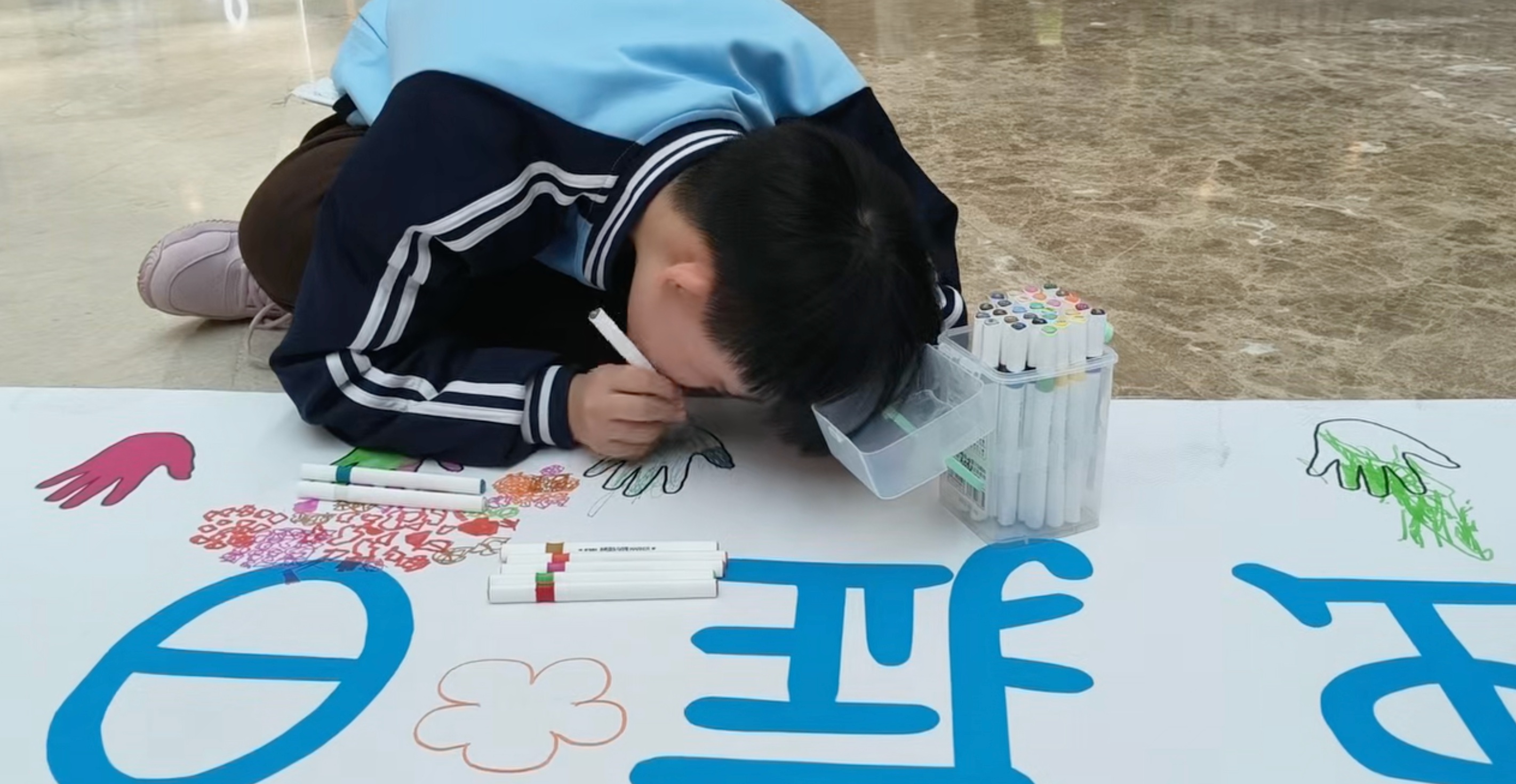 孩子现场共绘一幅画