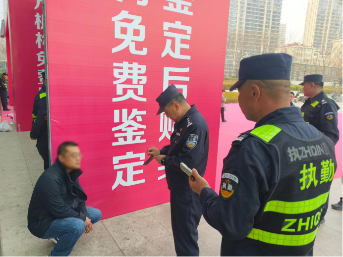 3月28日16时许,民警按既定巡逻方案开展防控工作,巡逻期间,民警接到参展商紧急报警,称其展位内多件贵重玉石展品被盗。