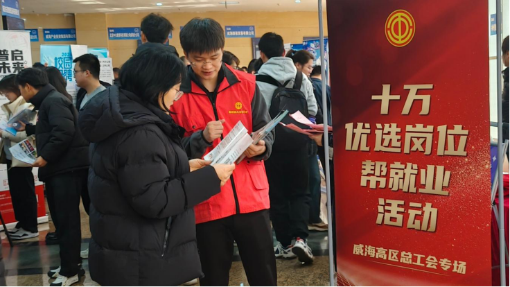 日前,威海高区总工会联合区人社中心在哈尔滨工业大学(威海)开展“十万优选岗位帮就业”高区专场活动,将就业帮扶、建会入会、法律服务精准送到青年求职者身边。