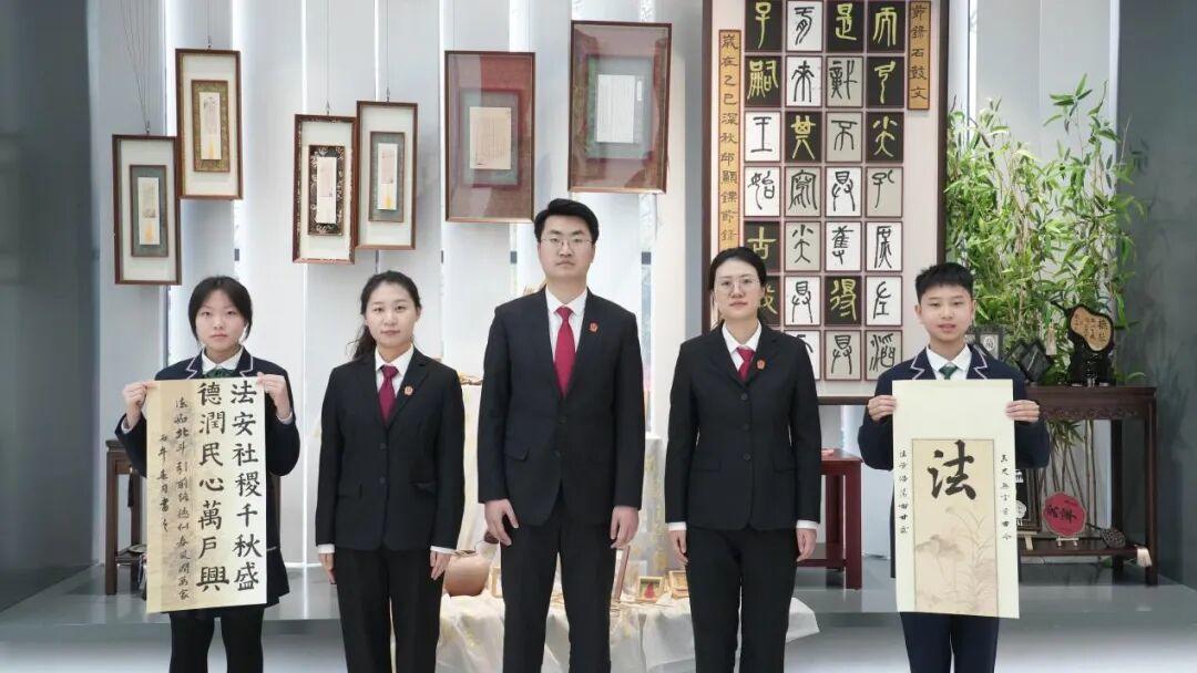 宣讲尾声,全体同学庄严宣誓,承诺不参与欺凌、勇敢报告、做知法守法好少年。随后的互动环节气氛热烈,同学们争相抛出心中的困惑,法院干警逐一耐心解答。活动尾声,两幅由学生书写的书法作品被郑重送到干警手中,墨香之间,是少年们对法治最朴素的敬畏。春日播种,静待花开,任城法院将持续推进未成年人普法工作,用司法力量护航青少年健康成长。