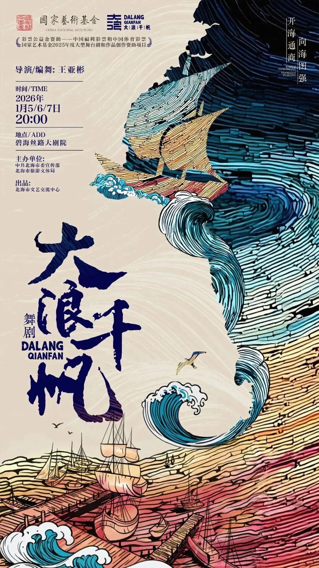 《大浪千帆》是国家艺术基金2025年度大型舞台剧和作品创作资助项目,其资金主要来自于中央专项彩票公益金。