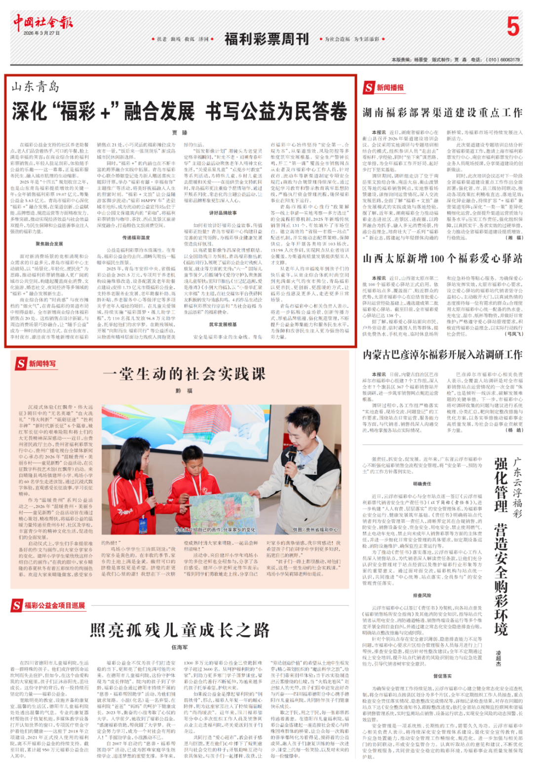 《中国社会报》山东青岛深化“福彩+”融合发展书写公益为民答卷