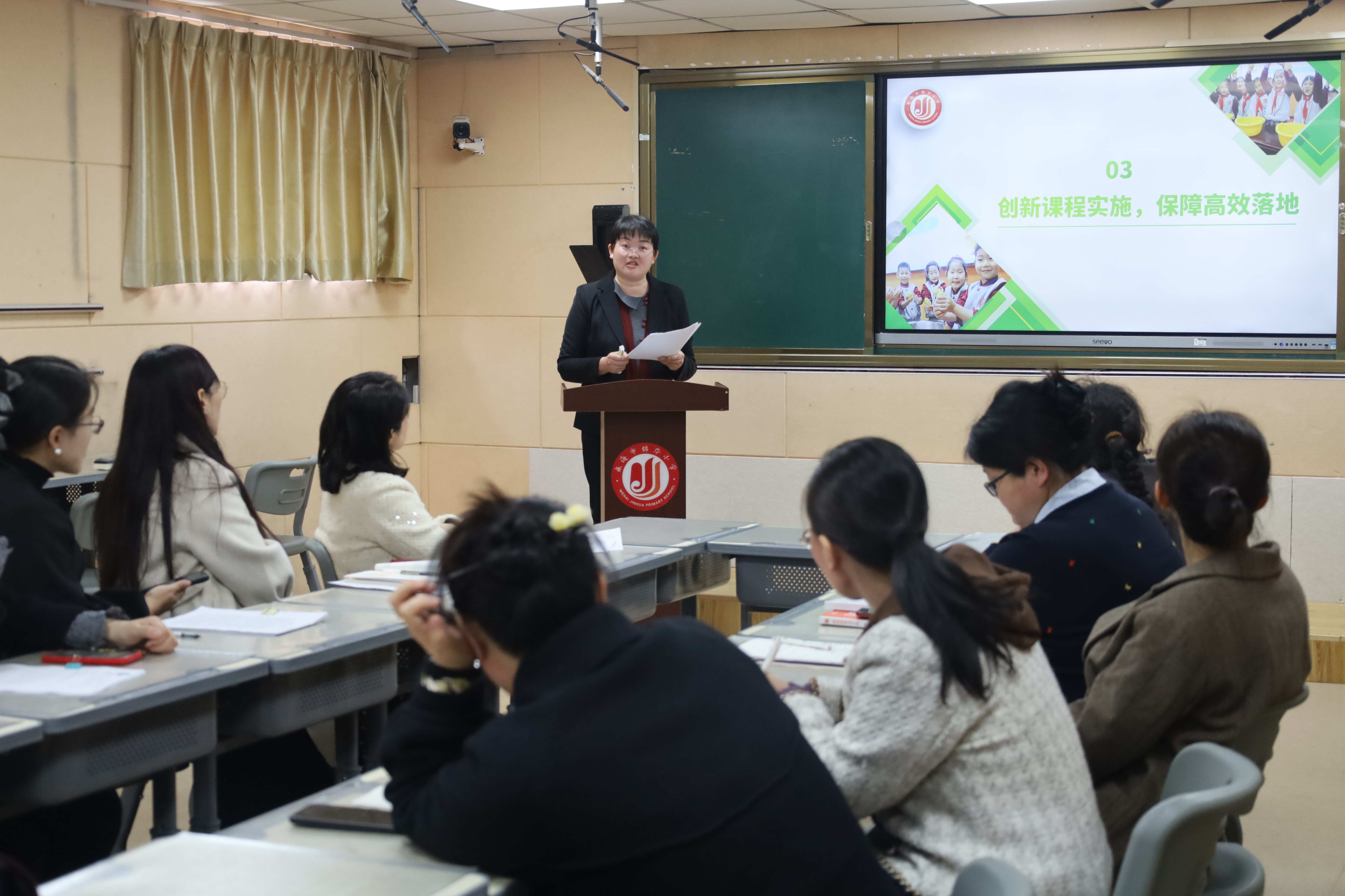 活动中,锦华小学吕昆昆老师展示“品端午·传文脉”课程——《走进端午--调查问卷的设计》。课堂以传统文化为基底,环节清晰、实操性强,小组合作分工明确,板书设计条理,尽显教学亮点。随后,张红老师和马小磊副校长依次作经验分享,为教师们提供了多元教学思路与实践参考。