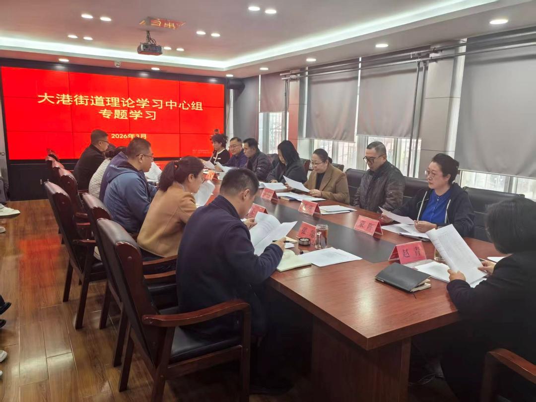 2026年3月,青岛市市北区大港街道党工委理论学习中心组在街道二楼会议室进行集体学习研讨,街道党工委书记赵青主持会议并带头谈认识体会,理论学习中心组成员也联系工作实际进行了交流发言。
