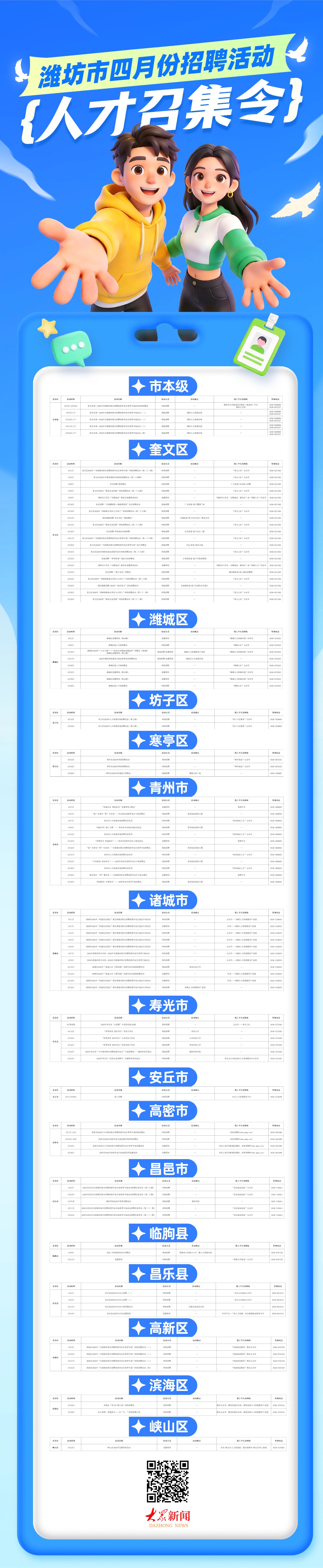 近日,潍坊市四月份招聘活动安排出炉,一起来关注: