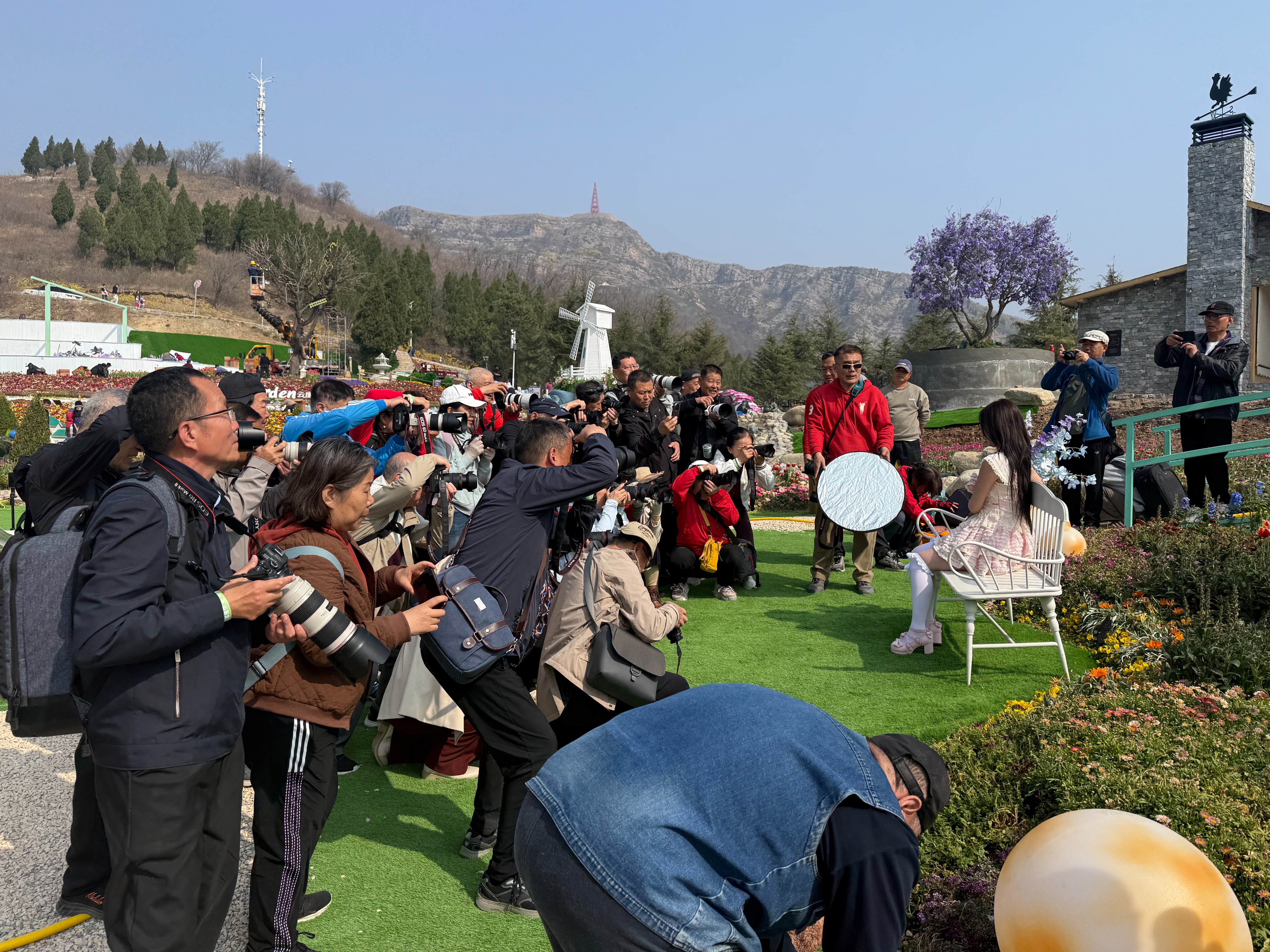 采风现场的氛围格外热闹,学员们个个热情满满,更有模特小姐姐倾情助阵、默契配合。模特们身着雅致服饰,或静静伫立在花海中,或悠闲漫步在古村小径上,身姿优雅、神态温婉,和红叶柿岩的春日美景完美融合,为大家的拍摄增添了不少灵动气息和人文韵味。学员们有的举着相机穿梭在花海间,有的拿着手机驻足取景,沉浸式捕捉春日美景和模特的优雅身姿,每一次按下快门,都是光影与美好碰撞的瞬间。摄影提高班的学员们专注打磨构图和光影,不放过郁金香的每一处细腻纹路、古村的每一缕烟火气,还有模特与景致相融的绝美画面;手机视频班的学员们则灵活运用所学技巧,记录下花海随风摆动的灵动、山间光影的流转,还有模特的优雅姿态,试着拍出好看的春日短视频,把柿岩的春日美好一一留存。