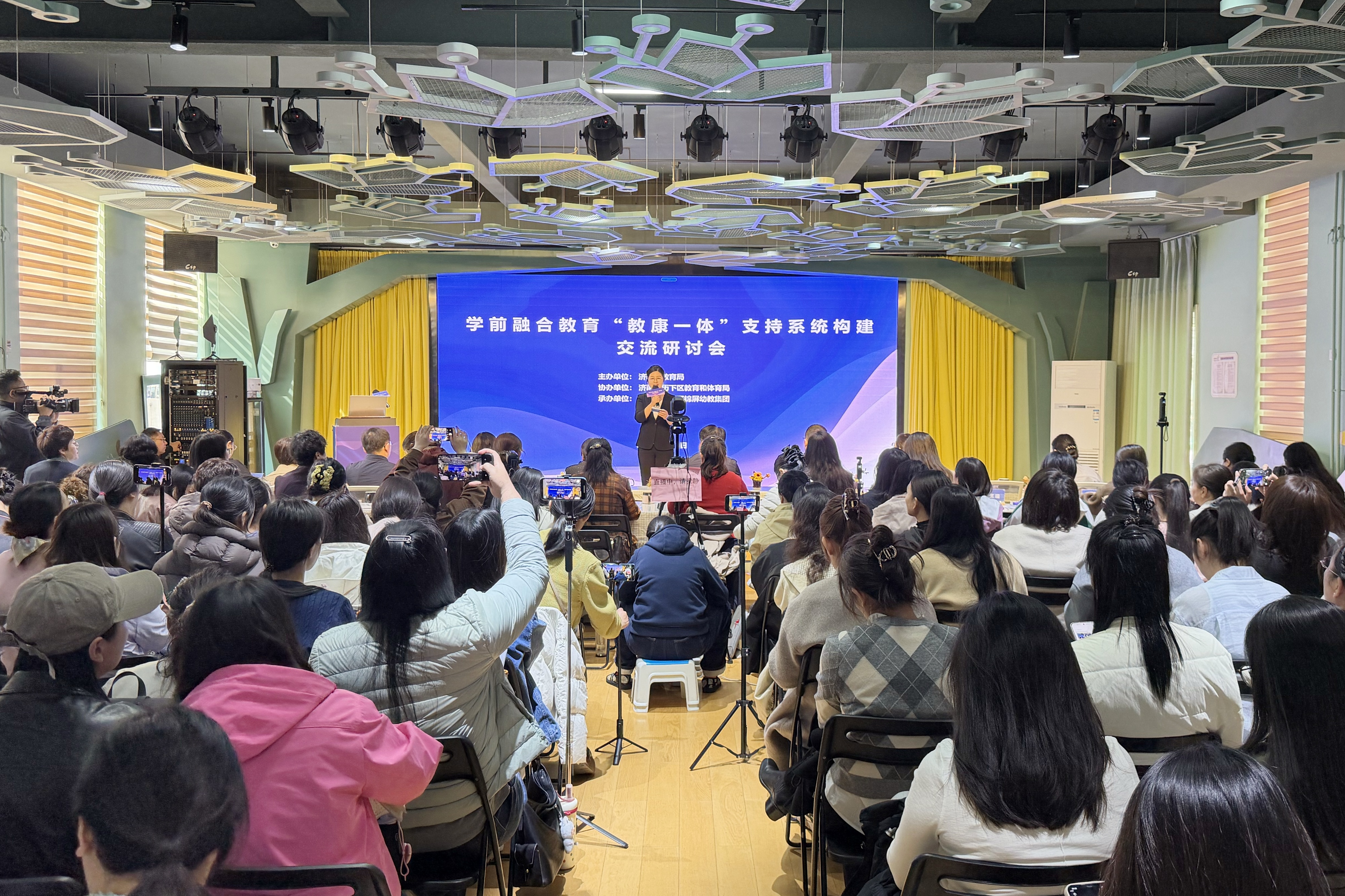 4月1日,由济南市教育局主办、历下区教育和体育局协办、历下区锦屏幼教集团承办的学前融合教育“教康一体”支持系统构建交流研讨会在锦屏幼教集团锦熙幼儿园顺利举行。山东省民政厅未成年人保护中心、市政协人口资源环境委员会等社会各界领导及市残联相关工作人员、驻济高校专家、全市幼儿园园长及骨干教师代表齐聚一堂,共研学前融合教育创新路径,共商特殊需要儿童成长保障举措。