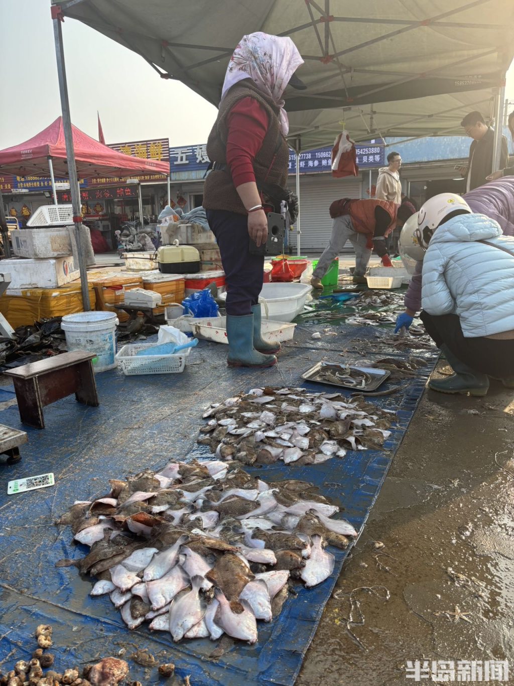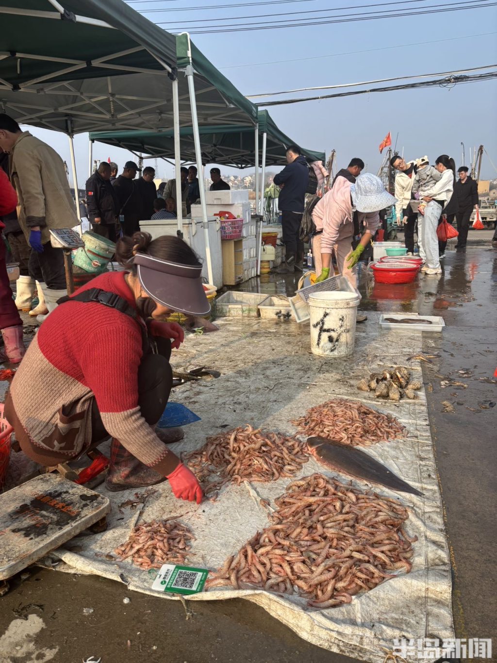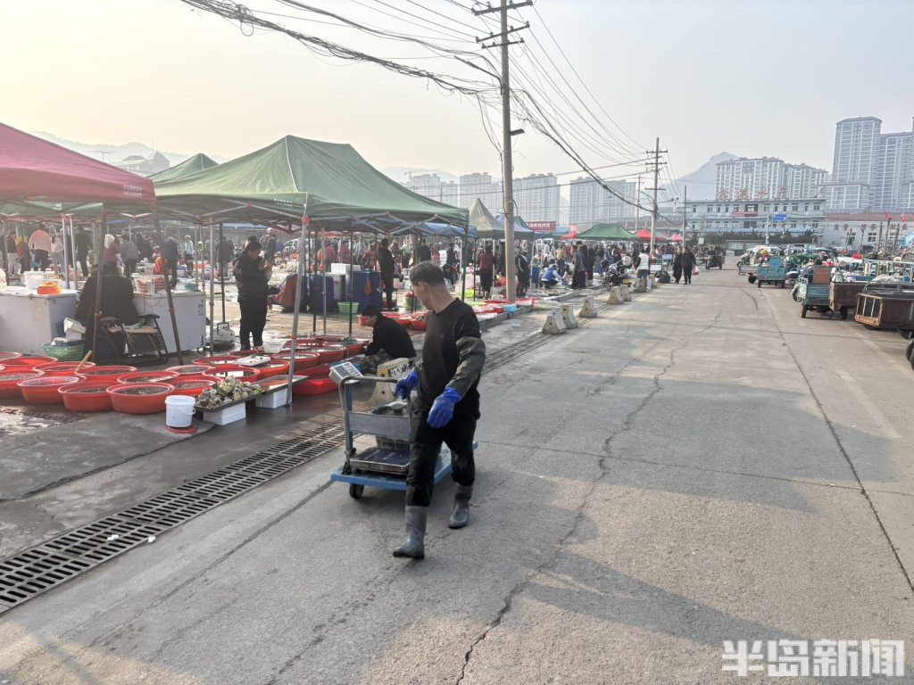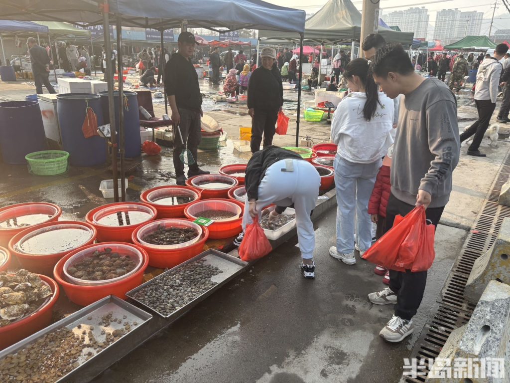 4月1日,青岛崂山南姜码头海鲜市场热闹非凡。刚上岸的各类时令小海鲜琳琅满目,吸引了不少市民前来采购。眼下,蛎虾、虾虎等海产正值肥美,成为市场主角,价格随个头大小略有浮动。据了解,待清明节后海鲜集中上市,供应量增加,价格预计将有所回落。(半岛全媒体记者何毅)