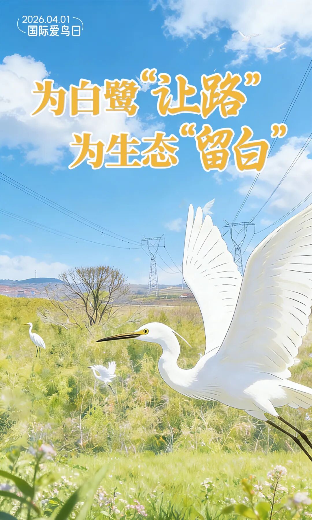 4月1日,国际爱鸟日来临之际,山东省日照市岚山区黄墩镇浔河岸边,春水初生。高大的杨树间,陆续归来的白鹭正衔枝筑巢。百米之外,国网山东电力烟威1000千伏特高压线路工程的施工现场,最后一段导地线刚刚展放完毕。当白鹭结队掠过杆塔上空,这片工地已然恢复宁静,只留下崭新的铁塔静静矗立,与鸟影相映成趣。