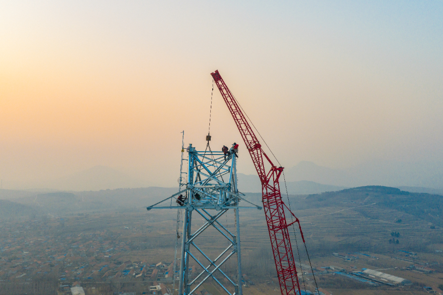 白鹭南迁越冬,组塔迎来“黄金窗口期”。日照地区入冬气温骤降,叠加河岸风大,高空作业难度倍增。施工单位集中资源,组织多支经验丰富的班组同步施工,1个月内完成全部铁塔组立,赶在来年春天前让杆塔“静默”就位。