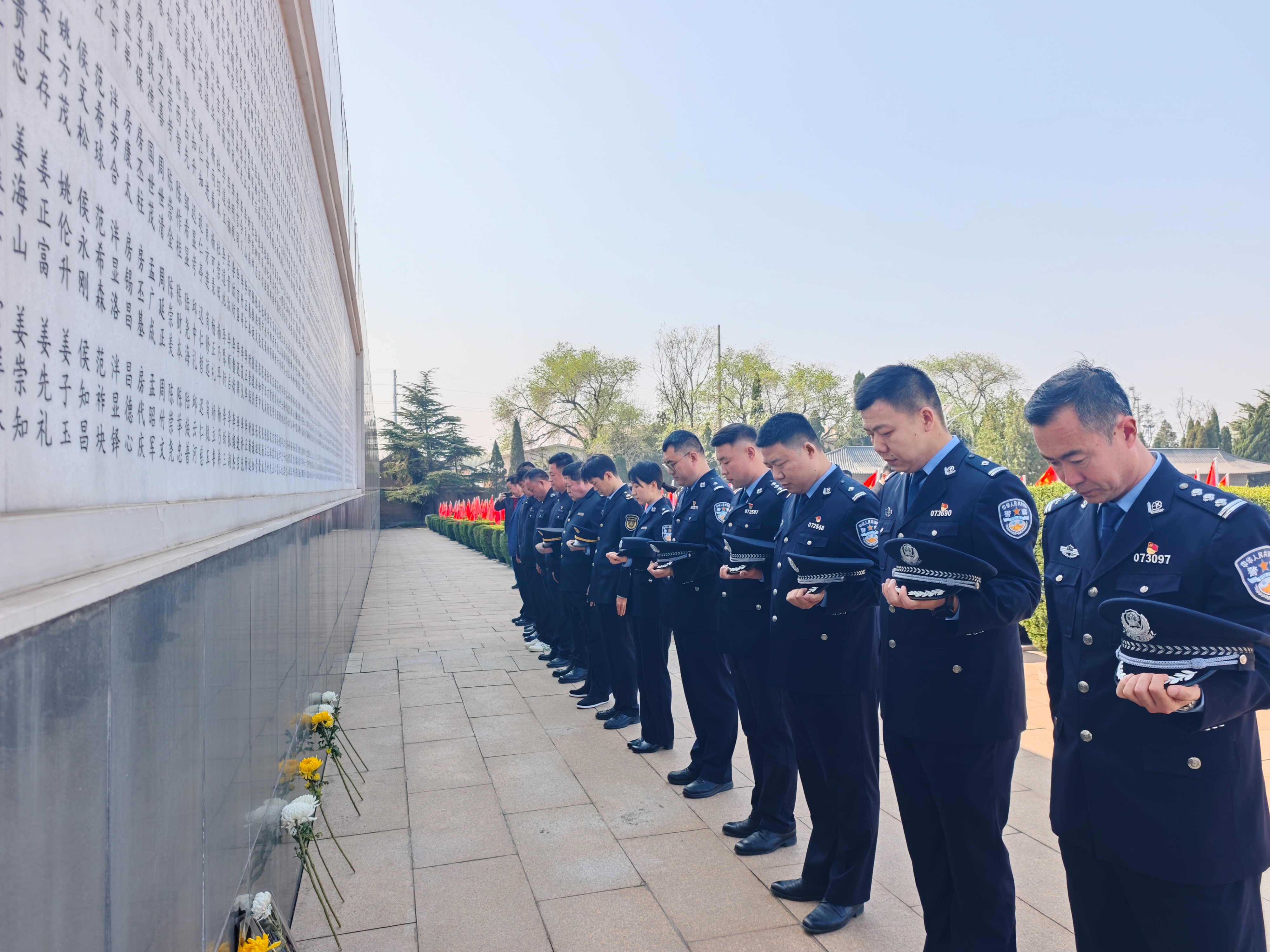 上午9时,烈士陵园内松柏苍翠,丰碑矗立。全体人员整齐列队,面向革命烈士纪念墙肃立,神情庄重,缅怀为民族独立、人民解放和国家富强英勇献身的革命先烈。全体人员脱帽默哀,向长眠于此的革命先烈致以崇高敬意。