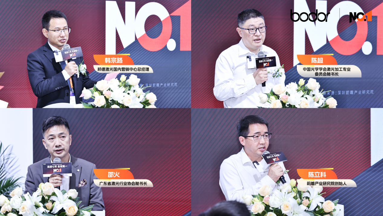 中国光学学会激光加工专业委员会秘书长陈超在致辞中指出,“连续七年全球第一”不只是一家企业的成绩单,更是中国激光产业从“跟跑”到“并跑”再到“领跑”的生动缩影。广东省激光行业协会秘书长邵火表示,邦德激光华南总部基地落户深圳,为粤港澳大湾区激光产业集群注入了新的活力。前瞻产业研究院创始人陈立科强调,这一成绩不是偶然的爆发,而是邦德激光从产能、研发、设计到智能化完整创新链条的系统性能力验证。随着嘉宾共同为“连续七年全球第一”揭牌,邦德激光以七连冠的傲人成绩,再次向世界展现了中国高端制造的非凡实力。