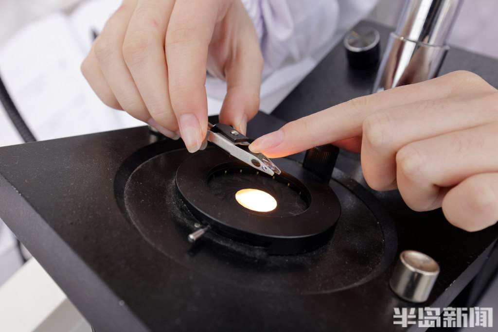 把宝石摆放在显微镜下,准备鉴定。