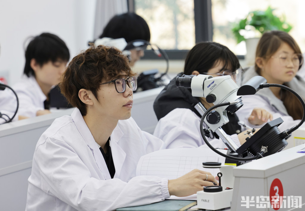 大二学生在上珠宝鉴定课程。