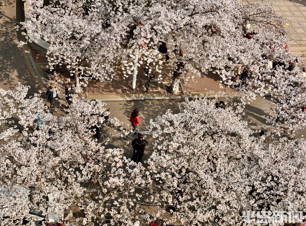 春风送暖,樱蕊飘香。4月1日,青岛李沧区楼山街道翠湖社区第十二届樱花节在北湖樱花大道浪漫启幕,漫天粉白花海与欢声笑语交织,为市民与游客献上一场春日限定的浪漫盛宴。社区800余株、绵延千余米的环形樱花大道景观,打造集赏花、文艺、互动、便民于一体的邻里盛会。春日浓浓的浪漫,在此刻触手可及。(半岛全媒体记者张伟)