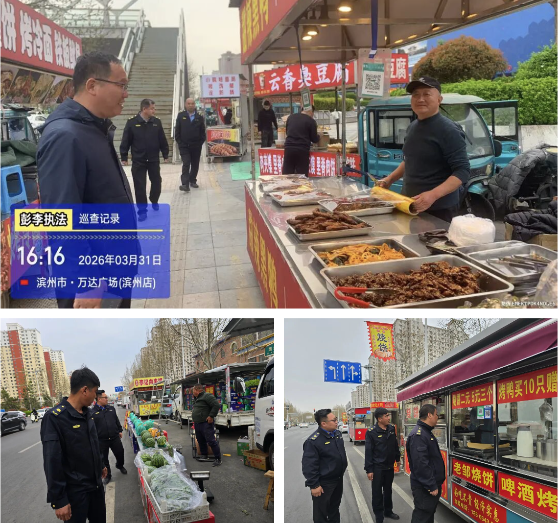 聚焦占道经营与潮汐摊区管理,双管齐下优化街区环境。针对万达夜市、新立河早市、滨州职业大学南门潮汐摊区,明确划定经营范围与时段,加强值守巡查,督促摊贩规范经营、做好保洁,落实“摊走地净”要求,让潮汐摊区成为便民不扰民的城市风景线;针对主次干道、小区及农贸市场周边占道经营乱象,采取“定点值守+动态巡逻”模式,坚持教育劝导为主、依法处置为辅,引导摊贩规范经营,清理门前乱堆乱放,定期“回头看”巩固整治成效。