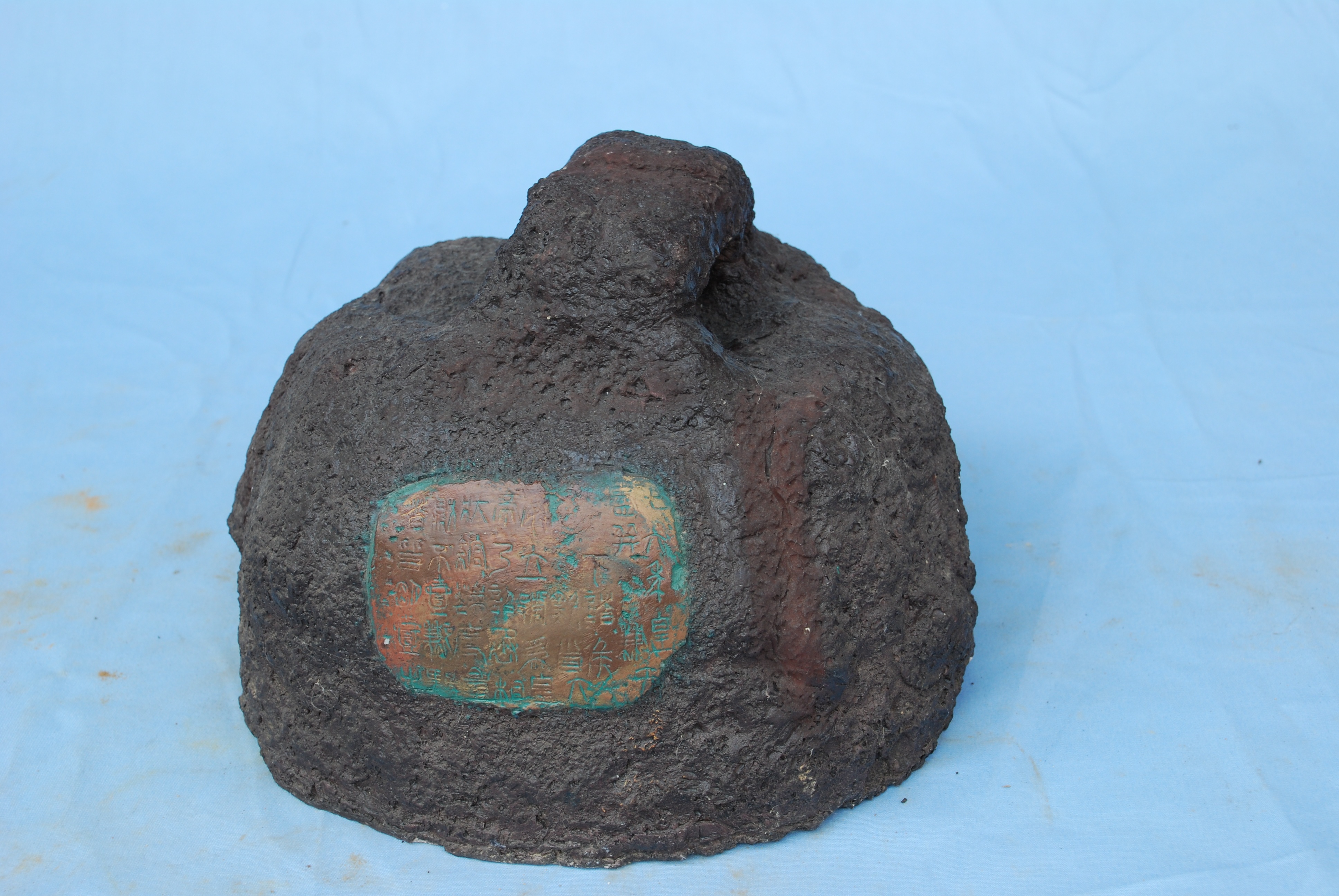 明白了吧,它还真是“秤砣”,本名叫秦权,也就是秦朝时的秤砣。因为身上有镶嵌的铜质诏文,它最准确的名字叫“秦嵌铜诏版铁权”。