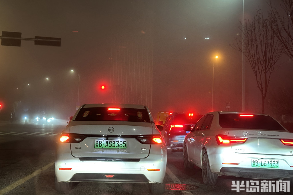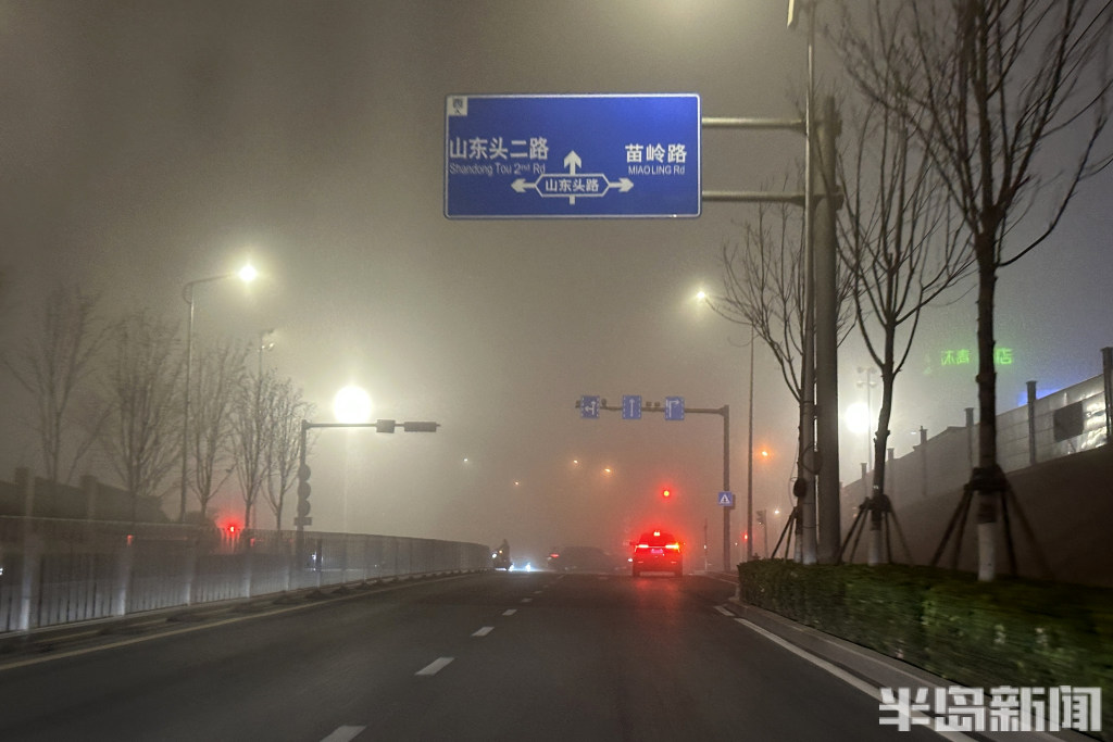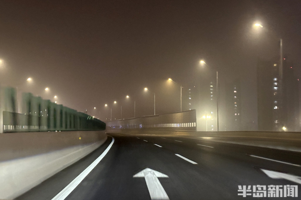4月1日,岛城市区大雾弥漫,海尔路以南雾气逐步加重,沿海一线能见度不足百米,路上车辆行驶缓慢。在此提醒市民出行提前做好准备,缓慢行驶,注意安全。(半岛全媒体记者宋泓睿)