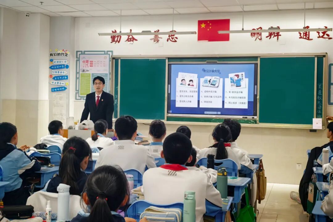 课堂上,夏煜桐聚焦电信诈骗、帮信罪、寻衅滋事等高频风险,深入浅出地讲解了违法犯罪行为的危害性与法律后果。夏煜桐详细拆解了刷单兼职、“校园贷”等常见骗局,提醒同学们妥善保护个人信息,做到不轻信、不透露、不转账。同时,夏煜桐结合典型案例以案释法,深刻剖析了口角之争演变为违法犯罪的惨痛教训,引导同学们学会情绪管理、理性化解矛盾。同学们认真聆听、踊跃互动,现场气氛活跃热烈。