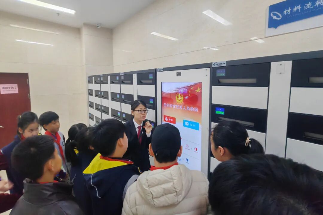 活动开始,在云南路法庭法官助理李星的引导下,同学们有序参观了诉讼服务中心等场所,直观了解了法院便民服务举措与工作环境。