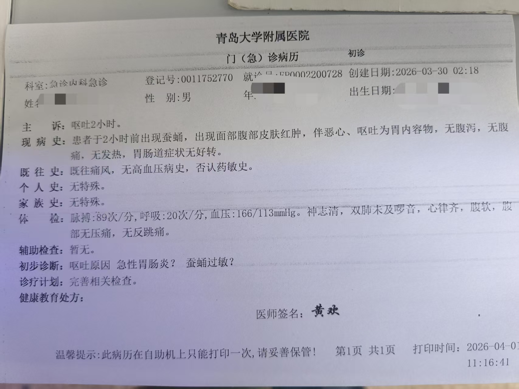 贾先生就医的病例,医生怀疑可能与食用蚕蛹有关。