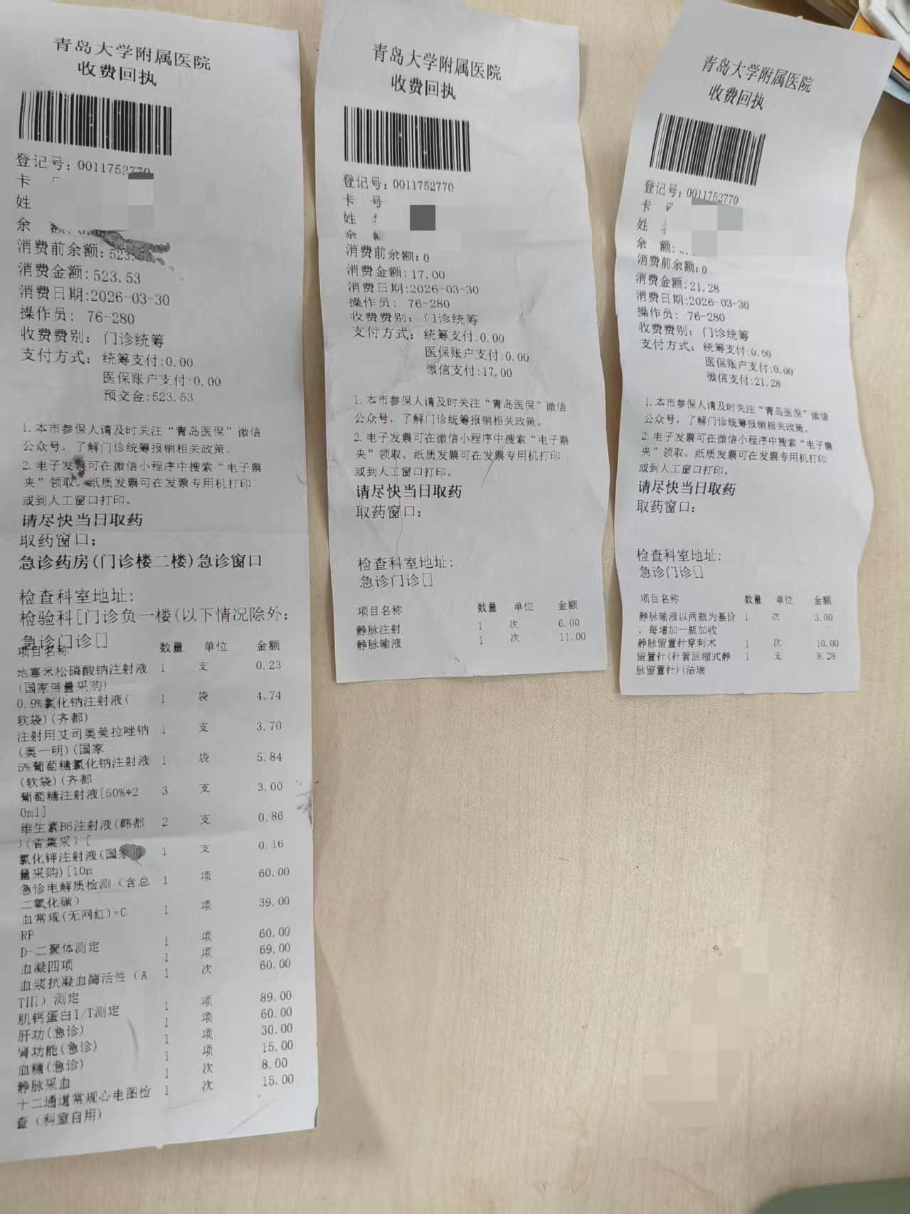夏女士提供的丈夫就医的部分收据。
