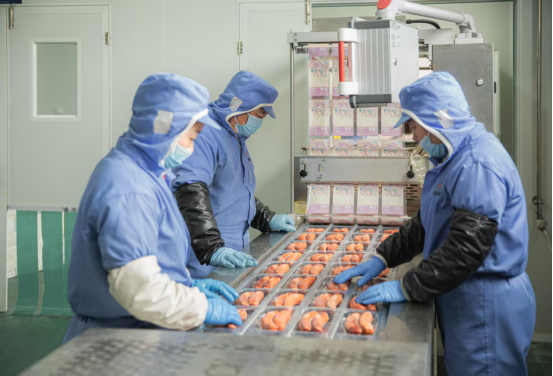 近日,记者走进位于蒋峪镇的山东春冠食品有限公司生产车间,只见自动化生产线高速运转,工人们各司其职、紧张有序,正全力赶制一批发往全国各地的鹅肥肝订单。