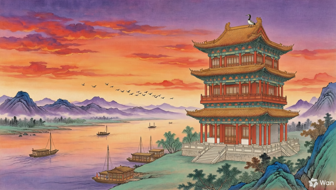 更惊叹的是,Wan2.7-Image智能地将大雁缩小,让其符合透视原理,完美融入远景建筑物的比例。