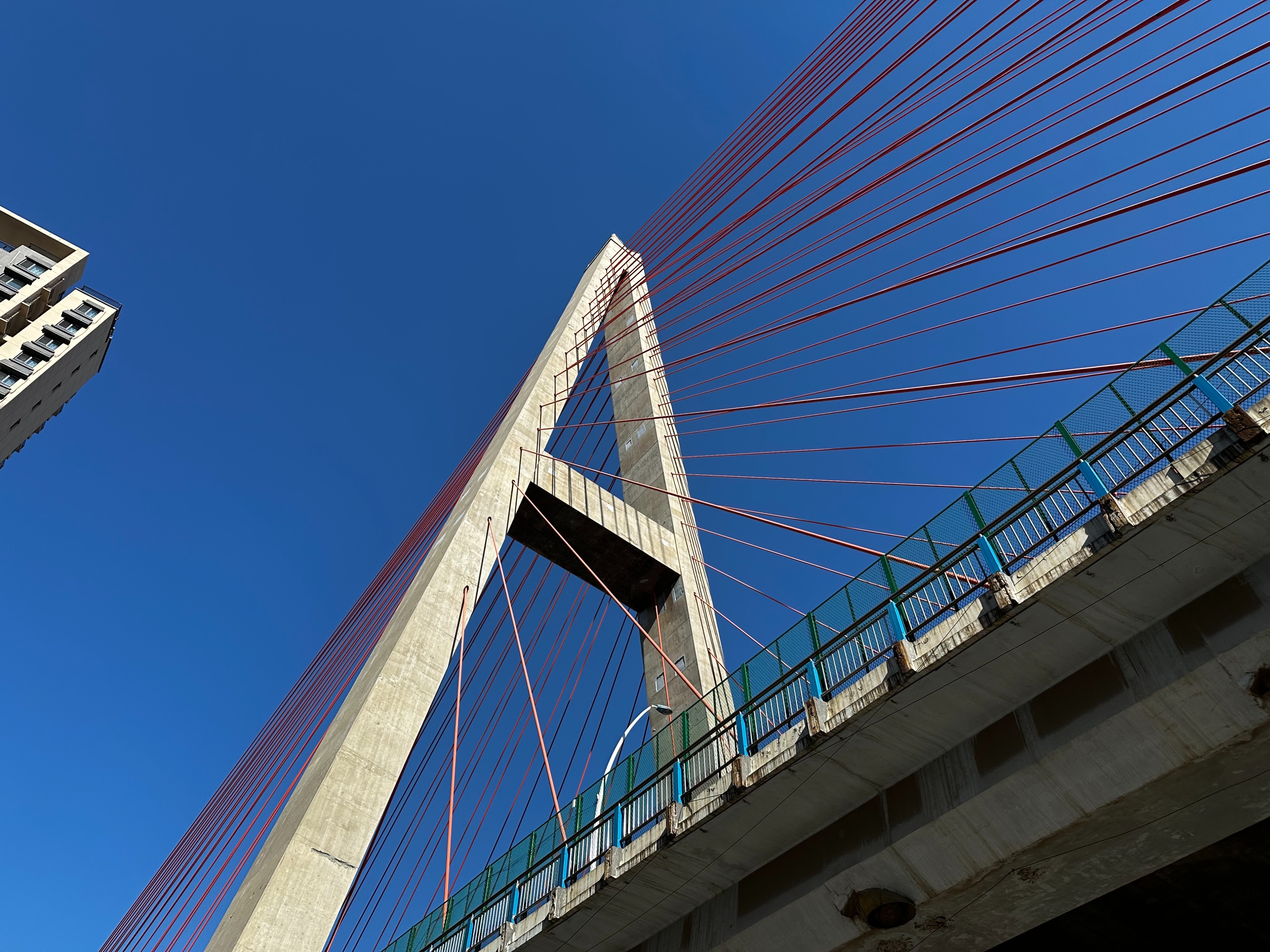 纬六路高架桥于1999年开工建设,2004年建成通车,全长约2700米,南起经二路,北至无影山南路,紧邻济南站,是衔接城区交通、疏导区域车流的重要走廊。桥身标志性的123米高A字形双塔,搭配196根斜拉索,勾勒出独有的城市天际线,早已成为西部城区辨识度极高的城市地标。