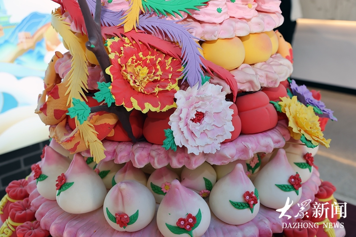 牡丹、莲花、锦鲤、寿桃……在威海文登,花饽饽早已不再是单纯果腹的面食,而是蜕变为令人惊艳的文创产品、增添喜庆氛围与艺术美感的特色工艺品,更催生出一个产值超5亿元的特色大产业。