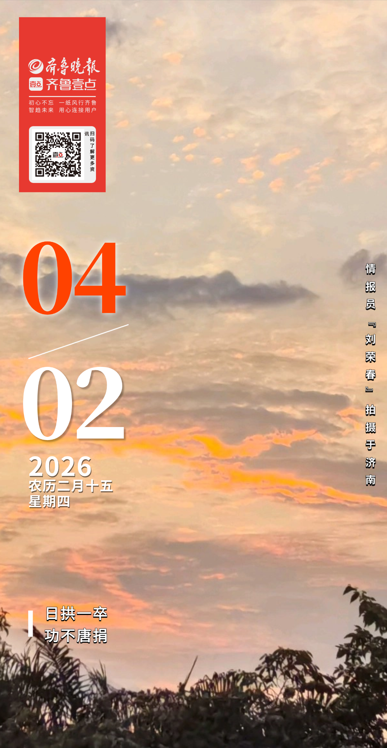 【参与方式】:通过“齐鲁壹点”APP,在情报站参与话题#壹点日历摄影作品征集,红包好礼等你#发送作品及详细介绍(1)拍摄地点(2)拍摄场景(3)拍摄月份日期(4)作品说明即可。