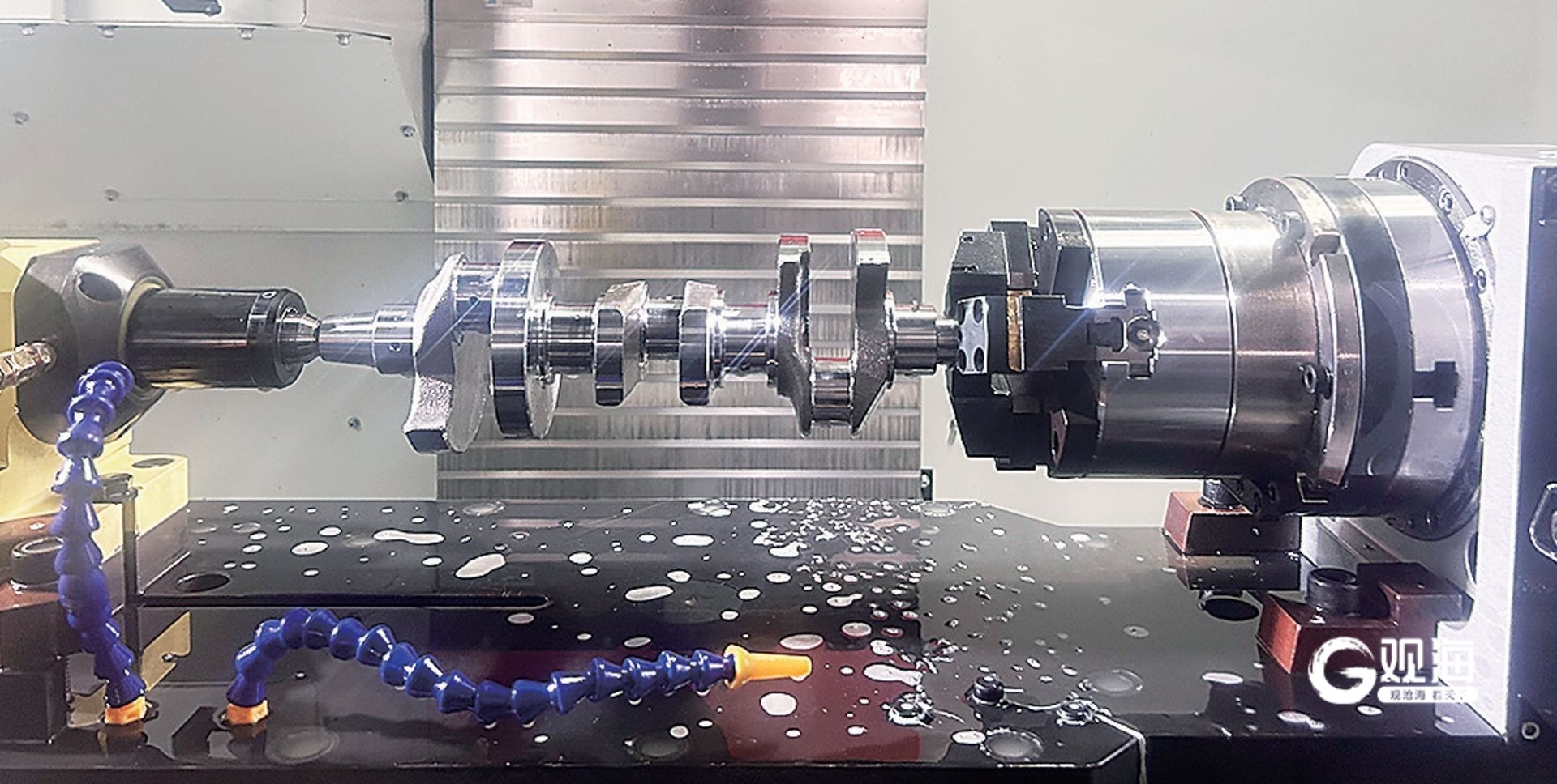 4月1日,平度德盛机械工厂内,高精度机床正在加工曲轴产品。