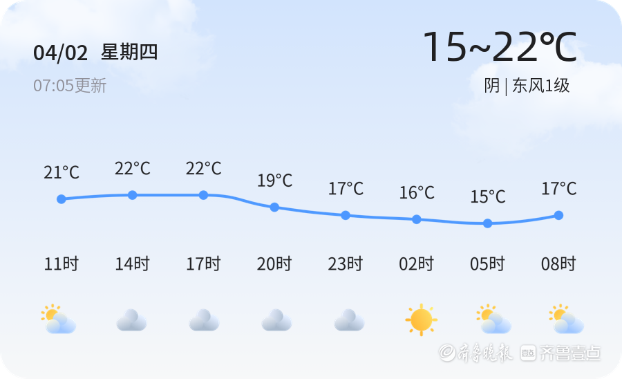 今天是4月2日,星期四,农历二月十五。济宁市今日天气阴,气温15℃至22℃,东风1级,空气湿度为86%,PM2.5浓度为72,属于良好水平。目前气温适中,但因阴天影响,体感温度较低,建议市民出行时注意保暖,随身携带雨具,以防突变天气。同时,阴天可能导致能见度降低,驾驶车辆时需保持车距,确保行车安全。
