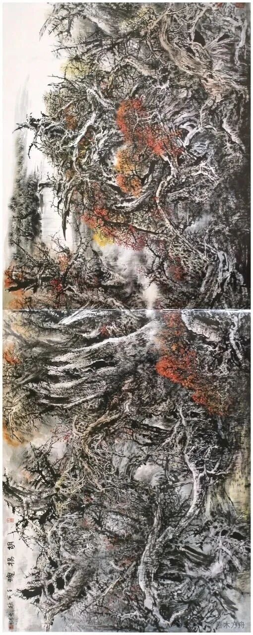 其次,“传统出新”的另一种可能。 他的实践表明,深扎传统未必导向保守,深入地域未必导致狭隘。通过对传统资源的“私淑”与“悟化”,对一地一景的深度沉浸与精神提纯,同样能开掘出具有现代精神强度与视觉张力的风格矿藏。