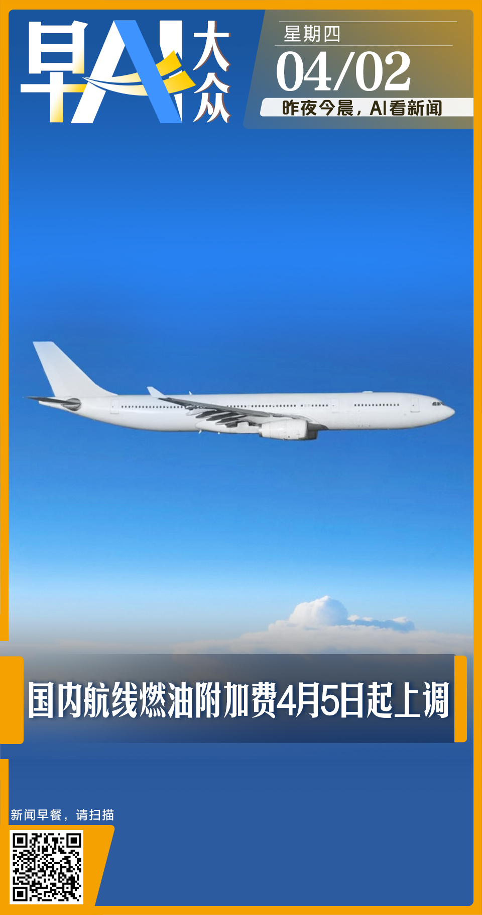 早AI大众|国内航线燃油附加费5日上调;美国执行载人绕月任务火箭发射升空