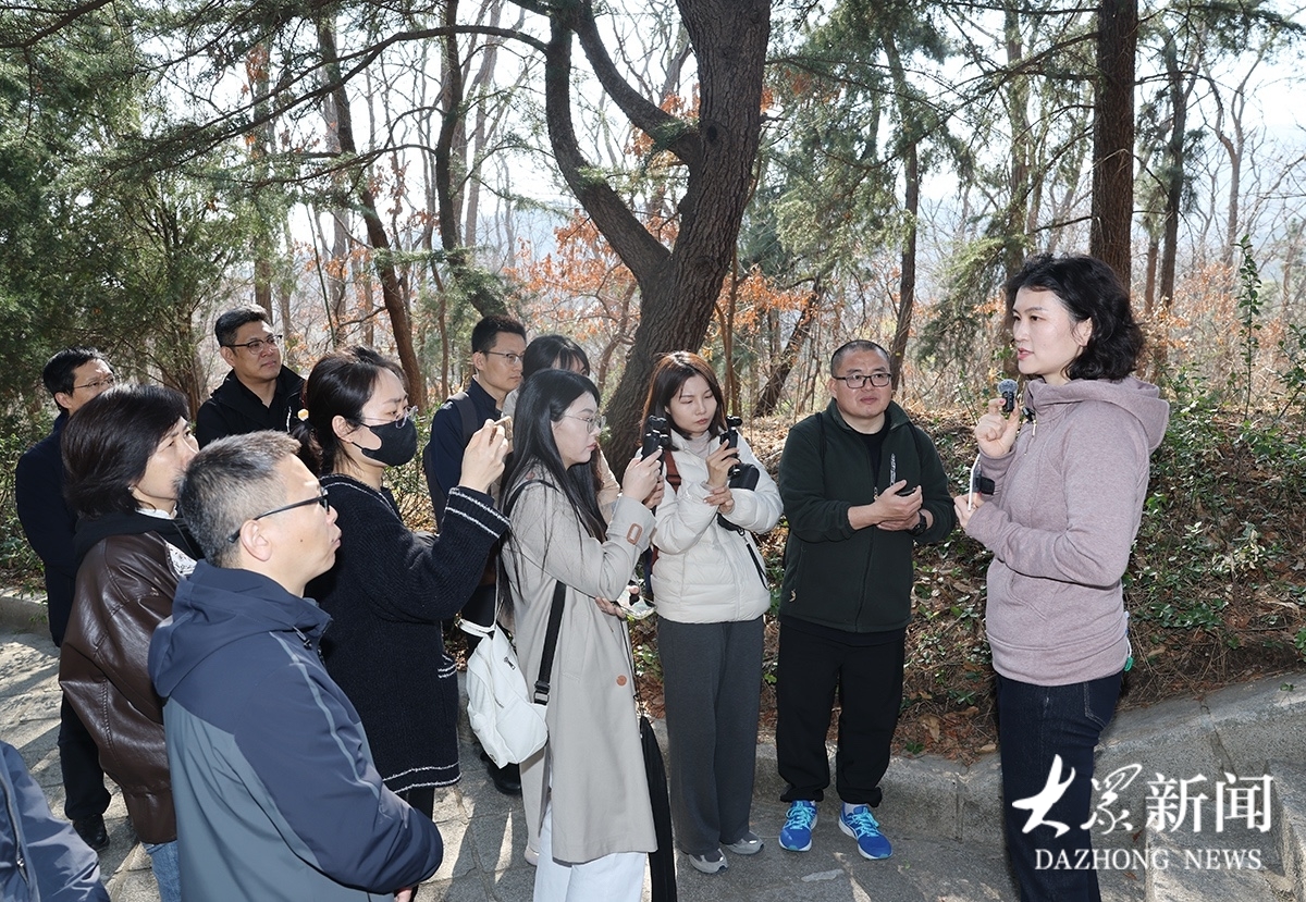 记者随团采访天福山革命遗址时,偶遇郭然一行,郭然接受了记者们的采访。